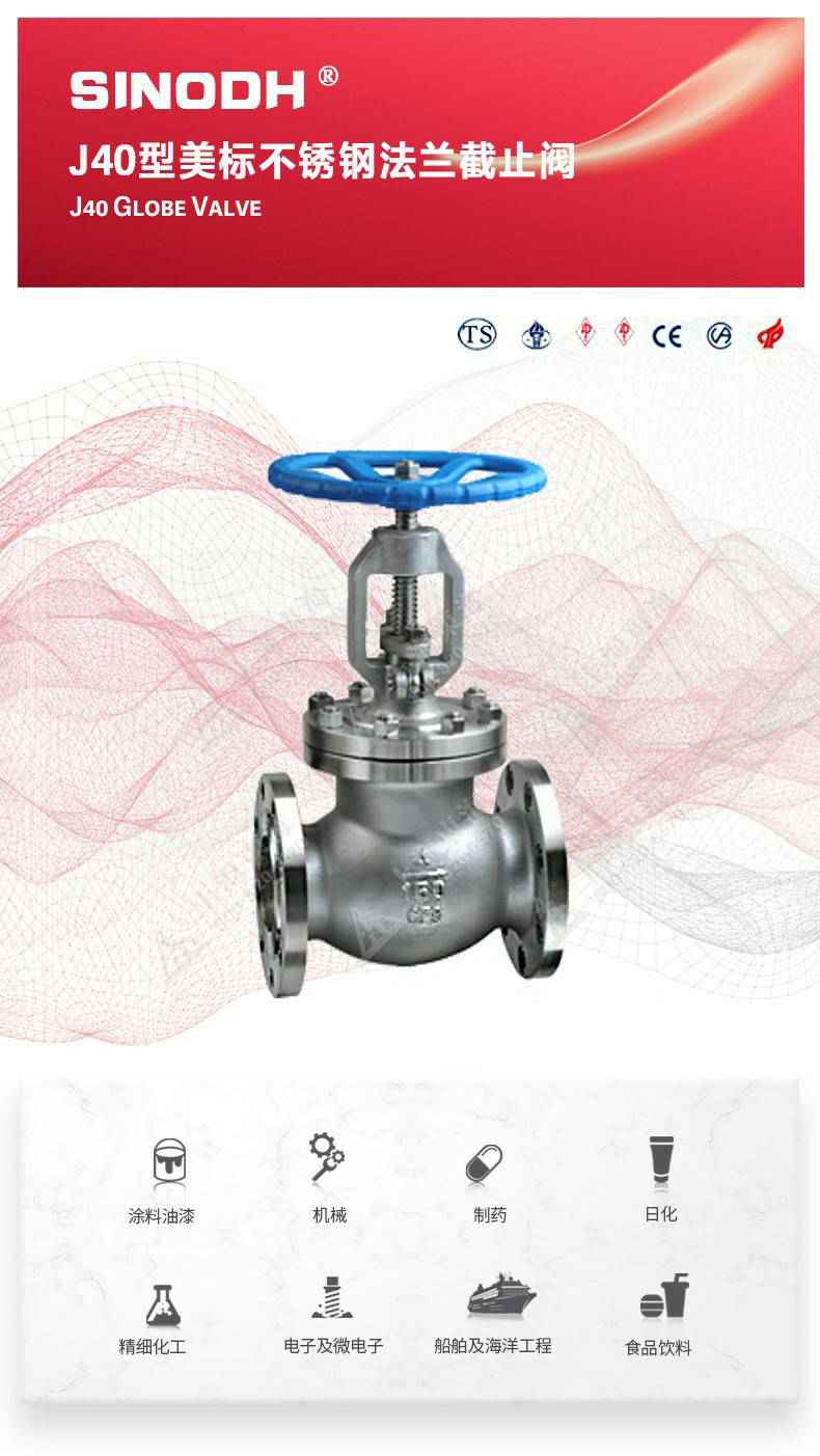 J40型美标不锈钢截止阀,为威尼斯app官网登录入口-威尼斯(中国)自主研发生产。本产品的设计制造符合美国国家标准ANSIB16.34,美国石油学会标准AP1 6D和AP I 600要求,产品结构紧凑密、刚性好、封性性能优秀是一种最常见的启闭阀,利用闸板的上下工作来接通(全开)和截断(全关)管道中的流体介质。