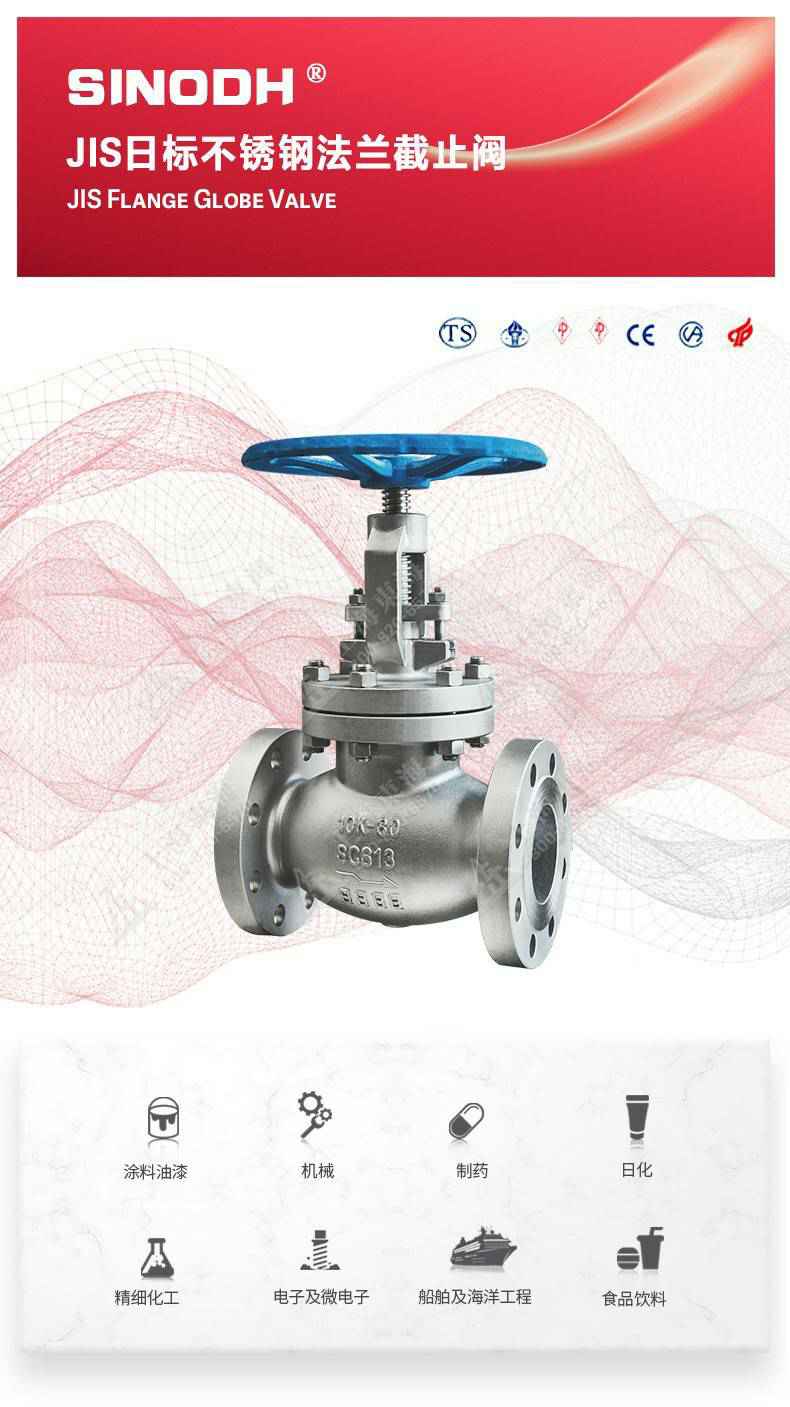 JIS日标不锈钢法兰截止阀,为威尼斯app官网登录入口-威尼斯(中国)自主研发生产。本产品设计制造标准符合J1SB2071标准,其启闭件是圆柱形的阀瓣,密封面呈平面或锥面,阀瓣沿流体的中心线作直线运动。国标截止阀只适用于全.开和全关,一般不用来调节流量,定做时允许作调节和节流。