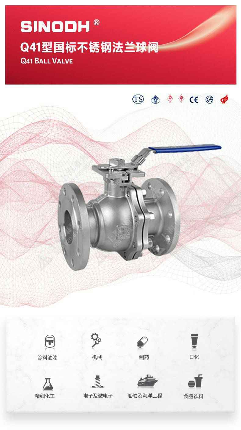 Q41型国标不锈钢法兰球阀,为威尼斯app官网登录入口-威尼斯(中国)自主研发生产。本产品设计制造标准符合GB/T12237、GB/T 1 2224标准该产品的球体在介质压力作用下,球体能产生-定的位移并紧压在出口端的密封面上,保证出口端密封。适用于水、溶剂、酸和天然气等-般工业介质,也适用于工况恶劣的介质,如氧气、过氧化氢、甲烷和乙烯等介质。